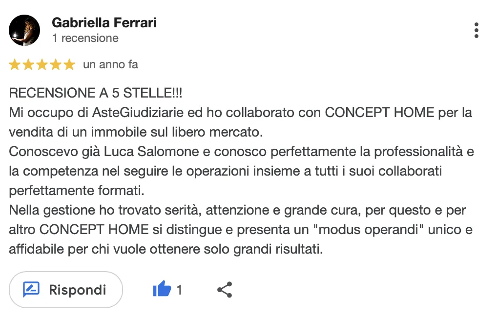 Appena prendiamo l'incarico di vendita entro 2 giorni avrai 250€ e quando lo vendiamo i restanti 1250€.